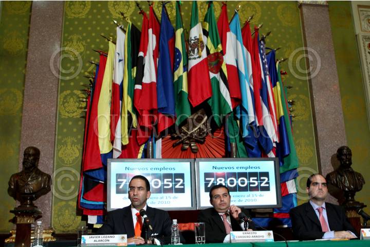MÉXICO, D.F., 20OCTUBRE2010.- Javier Lozano, secretario del Trabajo; Ernesto Cordero, secretario de Hacienda y Daniel Karam Toumeh, director del Instituto Mexicano del Seguro Social durante una conferencia de prensa que se realizo en el Palacio Nacional. FOTO: RODOLFO ANGULO/CUARTOSCURO.COM