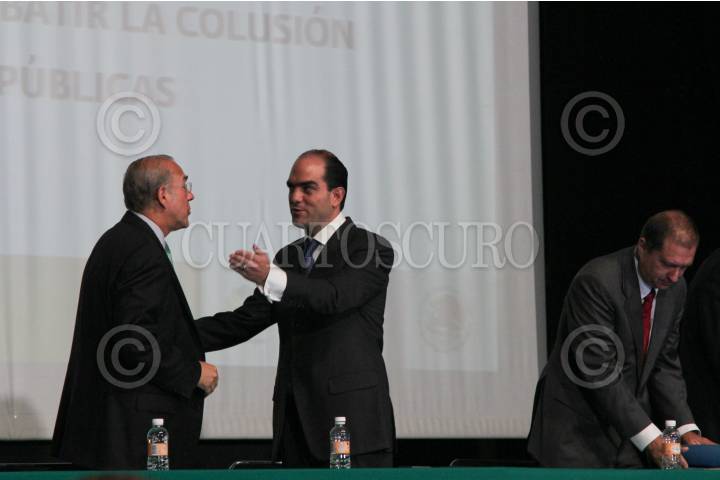 MÉXICO, D.F., 13ENERO2011.- José Ángel Gurría, secretario general de la Organización para la Cooperación y el Desarrollo Económicos y Daniel Karam Toumeh, director del Instituto Mexicano del Seguro Social y Eduardo Pérez Motta, presidente de la Comisión Federal de Competencia, durante la presentación de los "Lineamientos Desarrollados por la OCDE para combatir la colusión en Compras Pública" en el auditorio del IMSS. FOTO: MOISÉS PABLO/CUARTOSCURO.COM