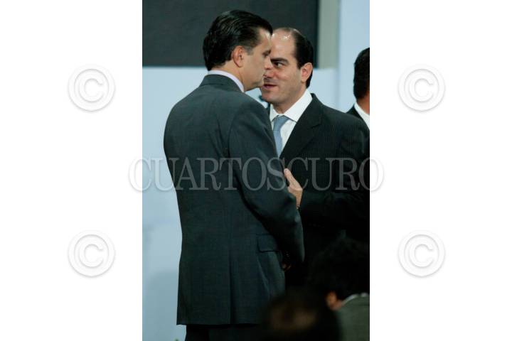 MÉXICO, D.F., 27MAYO2011.- Alonso Lujambio, Secretario de Educación Pública, conversó con Daniel Karam Toumeh, director del IMSS, durante la promulgación de la "Ley general para la inclusión de las personas con discapacidad", en la residencia oficial de Los Pinos. FOTO: MOISÉS PABLO/CUARTOSCURO.COM