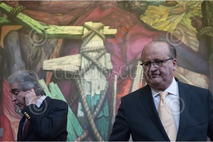 MÉXICO. D.F., 19NOVIEMBRE2013.- Fernando Galindo Favela, subsecretario de egresos de la Secretaría de Hacienda y Crédito Público, y Rafael Tovar y de Teresa, director del Consejo Nacional para la Cultura y las Artes (CONACULTA), dieron una conferencia de prensa en conjunto para explicar el presupuesto para el ejercicio fiscal 2014 del CONACULTA. FOTO: IVÁN STEPHENS / CUARTOSCURO.COM