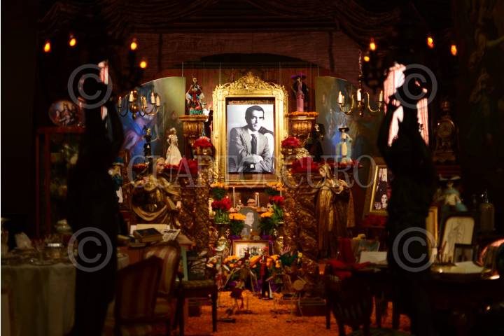 MÉXICO, D.F.,23OCTUBRE2014.- El día de hoy se inauguro uno de los altares de muertos que el barrio de San Ángel dedicara a grandes genios en estas fechas de día de muertos. El Museo del Carmen brindo el homenaje a Guillermo Tovar de Teresa quien murió el pasado 10 de noviembre. Familiares y amigos asistieron al evento para recordar con honor al historiador y cronista emérito de la Ciudad de México. FOTO: ISABEL MATEOS /CUARTOSCURO.COM