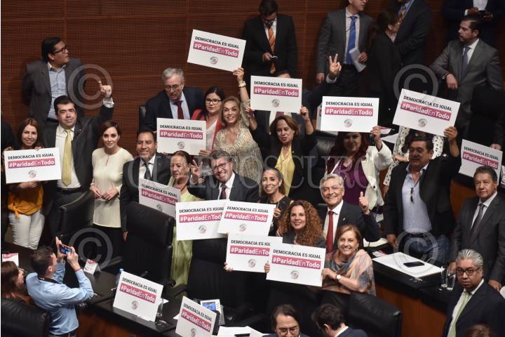 CIUDAD DE MÉXICO, 14MAYO2019.- Se lleva a cabo la Sesión Extraordinaria de la LXIV Legislatura de la Cámara de Senadores, en donde por unanimidad se aprobó la Ley de Equidad de género. FOTO: MARIO JASSO /CUARTOSCURO.COM