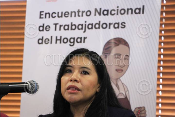 Nadine Gasmán, titular de INMUJERES, durante su participación en el Encuentro Nacional de Trabajadoras del Hogar