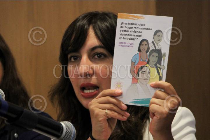 Jana Vasil'eva, integrante de Hogar Justo Hogar A.C., durante la presentación de la campaña para la afiliación de mujeres trabajadoras del hogar al IMSS.