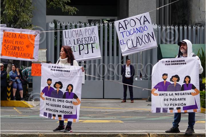 CIUDAD DE MÉXICO, 24OCTUBRE2023.- Trabajadores del Poder Judicial se manifiestan afuera de la Torre Prisma ubicada sobre Avenida Insurgentes, los inconformes exigen que se detenga la eliminación de los fideicomisos. La protesta se lleva a cabo mientras el secretario general del Sindicato de Trabajadores del Poder Judicial, Jesús Gilberto González sostiene reuniones con senadores. FOTO: ROGELIO MORALES /CUARTOSCURO.COM