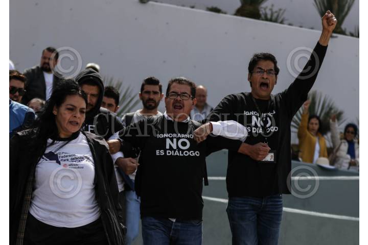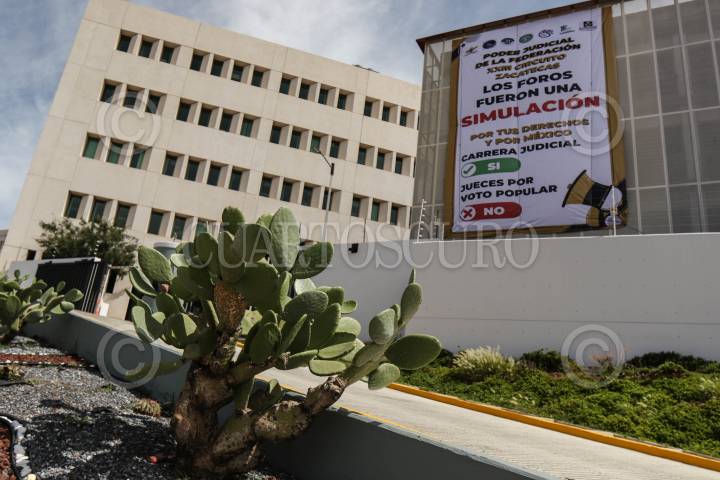 ZACATECAS, ZACATECAS, 19AGOSTO2024.- Jueces, magistrados y trabajadores de distrito denominados “Movimiento de Trabajadores Región Noreste - Zacatecas” del Poder Judicial, suspendieron labores como parte del acuerdo que Circuitos Judiciales Unidos determinaron a nivel nacional luego del desacuerdo a la propuesta de Reforma, después de “simulación en los Diálogos Nacionales, impulsado por el Poder Legislativo”, informaron los manifestantes. Con un mitin y el cierre de la puerta principal con una cadena, los trabajadores comenzaron sus acciones de “defensa de México”. FOTO: ADOLFO VLADIMIR /CUARTOSCURO.COM