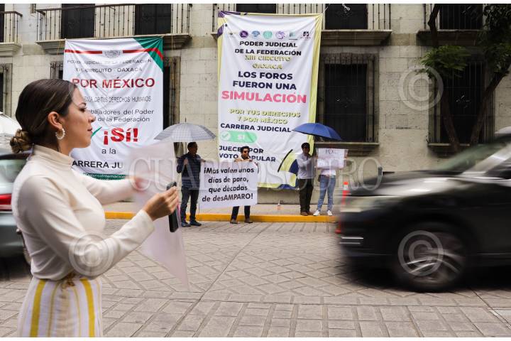 OAXACA, OAXACA, 30AGOSTO2024.- Trabajadores del Poder Judicial de la Federación en Oaxaca continúan con su paro de labores y protestas en contra de la Reforma Judicial propuesta por el presidente Andrés Manuel López Obrador. Este viernes mostraron pancartas y gritaron consignas al exterior de los juzgados federales del Décimo Tercer Circuito, ademas a las 19:30 horas prevén una marcha en calles de la capital oaxaqueña. FOTO: CAROLINA JIMÉNEZ/CUARTOSCURO.COM