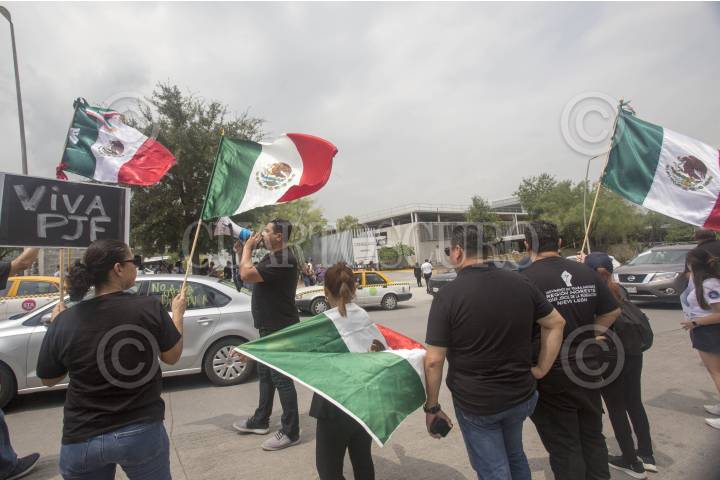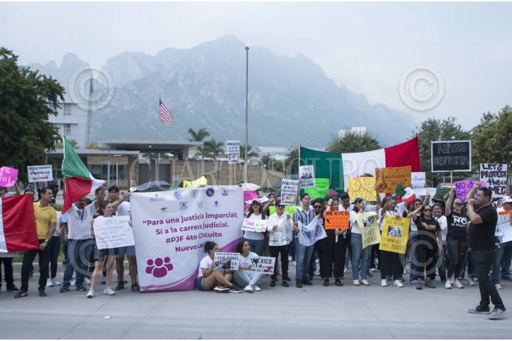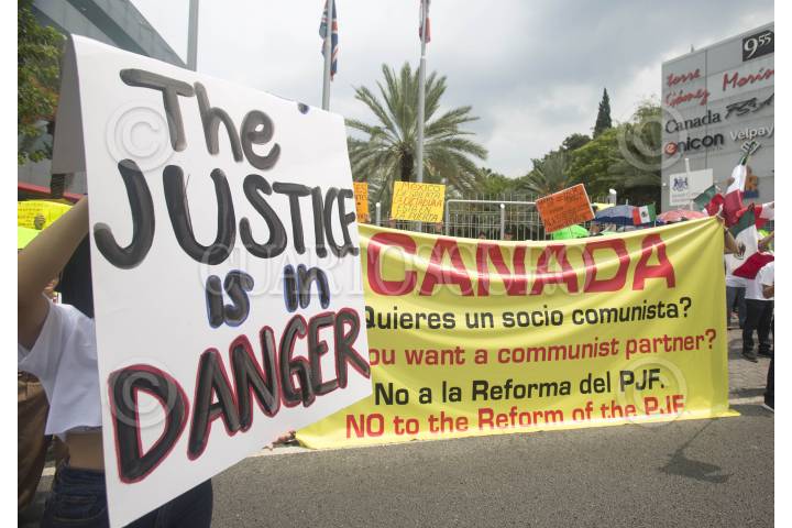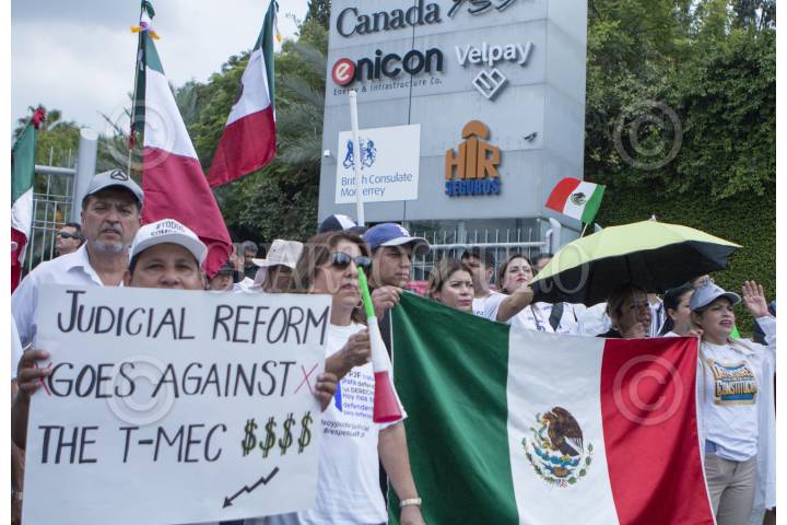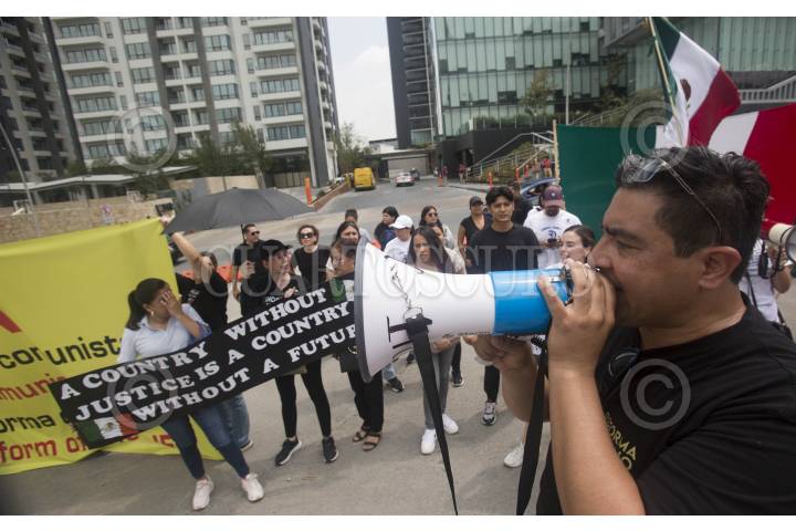 SAN PEDRO, NUEVO LEÓN, 03SEPTIEMBRE2024.- Trabajadores del poder judicial en Nuevo León protestaron en las afueras de los Consulados de Estados Unidos y Canadá en contra de la Reforma Judicial. Alrededor de 200 personas se sumaron a las manifestaciones en ambas embajadas. FOTO: GABRIELA PÉREZ MONTIEL / CUARTOSCURO.COM