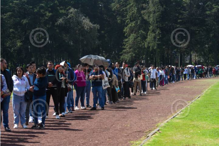 TOLUCA, ESTADO DE MÉXICO, 02SEPTIEMBRE2025.- Una larga fila de personas se observó en la Segunda Feria Regional del Empleo que tuvo como sede el Parque Metropolitano de Toluca, en donde a e ofrecieron más de 2 mil vacantes ofertadas por 135 empresas del Valle de Toluca. FOTO: CRISANTA ESPINOSA AGUILAR/CUARTOSCURO.COM