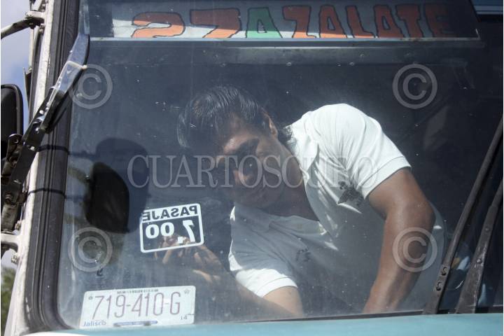 GUADALAJARA, JALISCO, 03SEPTIEMBRE2012.- A pesar de que el fin de semana pasado se anunció el fallo del Tribunal de lo Administrativo del Estado para dar marcha al aumento que ya se había autorizado anteriormente, algunas rutas no han acatado la orden emitida el sábado por la mañana y continúan cobrando la nueva tarifa, es por tal razón que se realizaron operativos en algunas zonas de la metrópoli para sancionar y obligar a los choferes a cobrar la tarifa de seis pesos así como también borrar y quitar todos los letreros de la nueva tarifa de 7 pesos. FOTO: FERNANDO CARRANZA CARRILLO /CUARTOSCURO.COM
