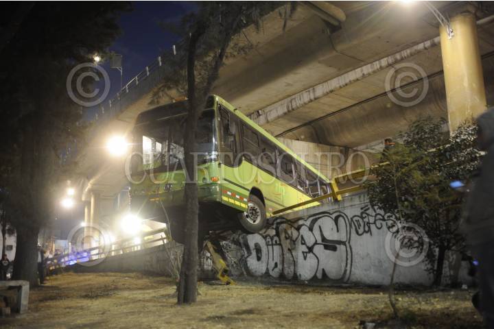 MÉXICO, D.F., 05ENERO2013.- Un camión de la RTP se descarriló cuando circulaba sobre el Periférico a la altura de Molinos en la colonia Alfonso XIII, varios pasajeros resultaron heridos, ninguno de gravedad. FOTOS: LUIS CARBAYO /CUARTOSCURO.COM