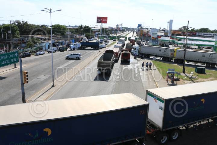 VILLAHERMOSA, TABASCO, 28DICIEMBRE2018.- Chóferes del trasporte urbano colectivo realizaron un bloqueo con sus unidades el Periférico, a la altura de la SCT, exigiendo el pago de tres meses de subsidio en gasolina. FOTO: EDGAR JASSO /CUARTOSCURO.COM