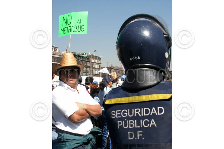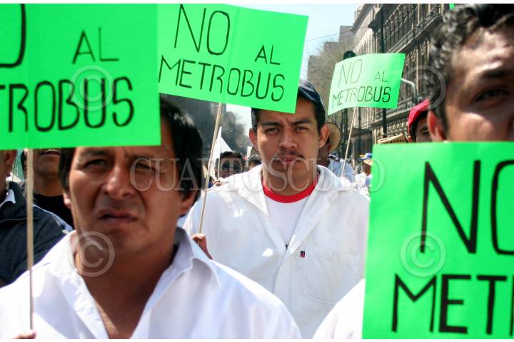 MÉXICO, D.F., 27FEBRERO2007.- Microbuseros inconformes por la construcción del Metrobus en el Eje 4 Sur protestaron en el Zócalo de la ciudad. FOTO: ISAAC ESQUIVEL/CUARTOSCURO.COM