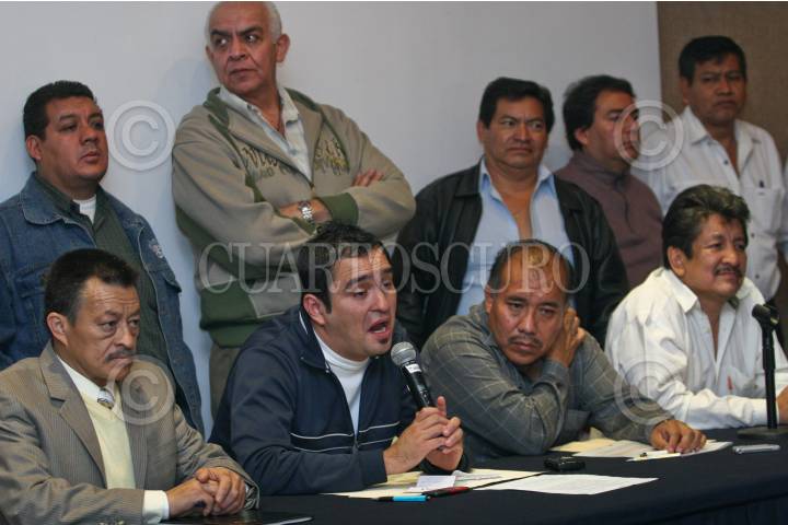 MÉXICO, D.F., 16NOVIEMBRE2010.- Líderes transportistas y concesionarios de microbuses de las rutas 1, 3 y 88, encabezados por José Barragán, Noé Rendón, Nicolás Vázquez, y Eli Homero Aguilar, anunciaron la realización de una megamarcha el próximo viernes 19 de noviembre, a las 16:00 horas, para mostrar a los alcaldes internacionales que la Ciudad de México no es de vanguardia. FOTO: ISAAC ESQUIVEL/CUARTOSCURO.COM