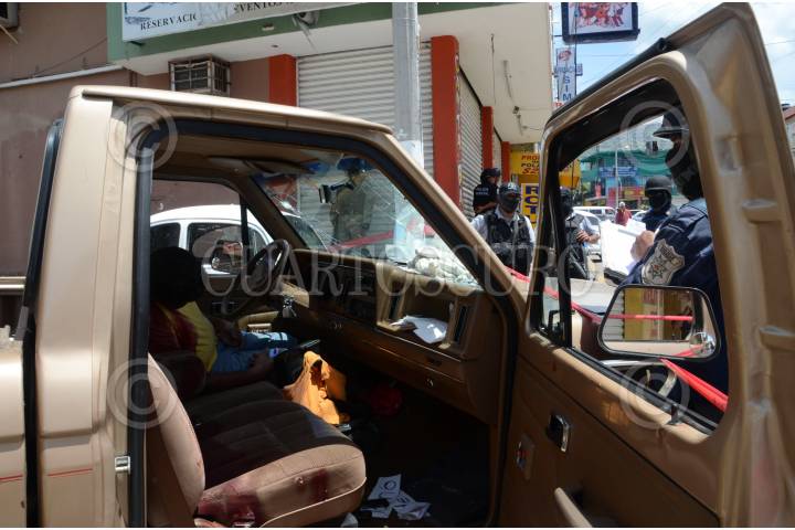 ACAPULCO, GUERRERO, 22JUNIO2011.- Jesús Hogger Alcaraz, transportista y ex delegado de Tránsito en la colonia Emiliano Zapata en la administración municipal de 2005-2008, fue asesinado a balazos en la colonia Progreso, cuando se desplazaba a bordo de una camioneta Ranger color arena. Los hechos se suscitaron alrededor de las 12:00 horas, en la calle Zacatecas esquina con la avenida Niños Héroes. El ex funcionario municipal fue interceptado por hombres armados quienes le dispararon en diversas ocasiones. Una persona de la que no se proporcionaron datos, quien viajaba como copiloto, resultó herida y fue trasladada para su atención médica. FOTO: BERNANDINO HERNÁNDEZ/CUARTOSCURO.COM