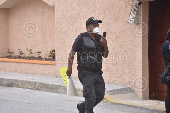 Un elemento de la policía municipal retiró el letrero que fue colocado sobre la combi del chófer asesinado.