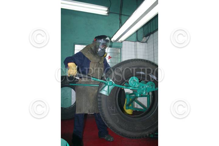 MÈXICO, D.F. 13JULIO2006.- Trabajadores en el taller de tranvìas y medios de transporte electricos del D.F. dan los ùltimos toques para la elaboraciòn de llantas. FOTO: Paola Hidalgo/CUARTOSCURO.COM
