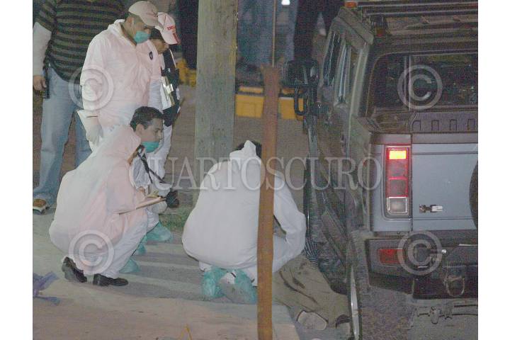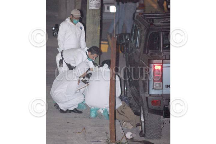 SAN NICOLAS DE LOS GARZA, NUEVO LEON 07DICIEMBRE2007.- La madrugada del 5 de diciembre, Un abogado murió asesinado, en la colonia El Roble, en mencionado municipio Trascendió que Jorge Arturo Becerra Solar, de 46 años de edad, defendía legalmente a Erick Alvarado Muñoz, alias "La Gata", quien está siendo buscado por estar presuntamente involucrado en el robo masivo de vehículos. El crimen ocurrió poco después de las 23:30 horas, en el cruce de las calles González Camarena y Morenita Mía, en la referida colonia. Los sucesos ocurrieron cuando el profesionista en derecho bajaba de su vehículo tipo Hummer con las placas de circulación PW51997. FOTO: CUARTOSCURO.COM