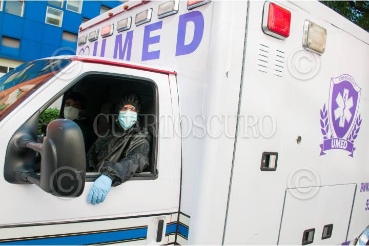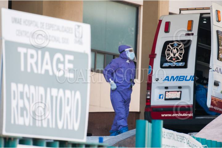 Un paramédico sale de la ambulancia que fue rechazada para dejar a un enfermo por Covid-19 que trasladaban al Triage del Centro Médico Siglo XXI ante la saturación de este nosocomio.