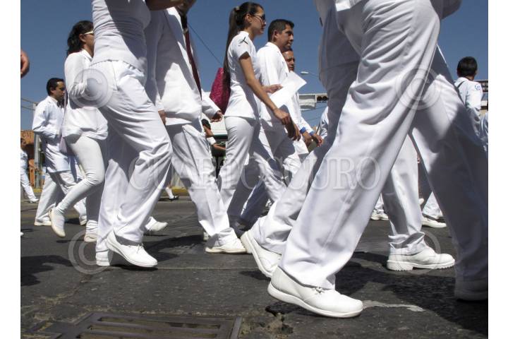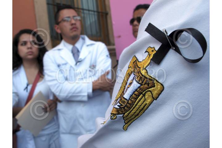 LEÓN, GUANAJUATO, 29OCTUBRE2014. Aproximadamente mil quinientos trabajadores del sector salud, entre ellos ISSTE, HGR, IMSS y estudiantes de la facultad de medicina de la Universidad de Guanajuato, marcharon sobre un sentido del Bulevar Adolfo López Mateos y terminaron frente a la presidencia Municipal de León, para exigir justicia por los recientes asesinatos en asalto y en casos distintos de Paulina Méndez originaria de Querétaro y estudiante de la especialidad de traumatología en el HGR y el joven recién egresado de la carrera de mecatrónica por la Universidad de León, Miguel Ángel Quiroz .FOTO: GERARDO M. GARCÍA /CUARTOSCURO.COM
