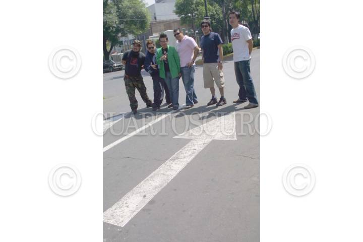MEXICO D.F 27 ABRIL 2005.- El grupo de Ska ¨La Tremenda Corte" posa para los fotografos antes de comenzar su conferencia de prensa en donde anunciaron sus presentaciones en el Hard Rock Café. FOTO: Eunice Adorno/CUARTOSCURO.COM