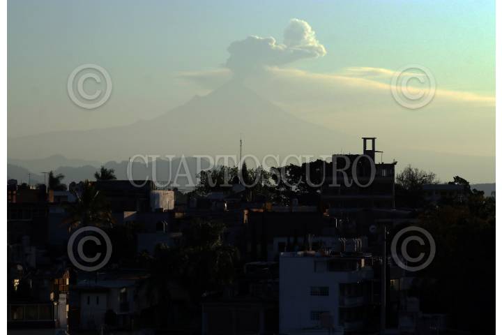 Presenta el volcán Popocatépetl actividad moderada en las ultimas horas, en el amanecer emitió vapor de agua, gases volcánicos y ligeras cantidades de ceniza.