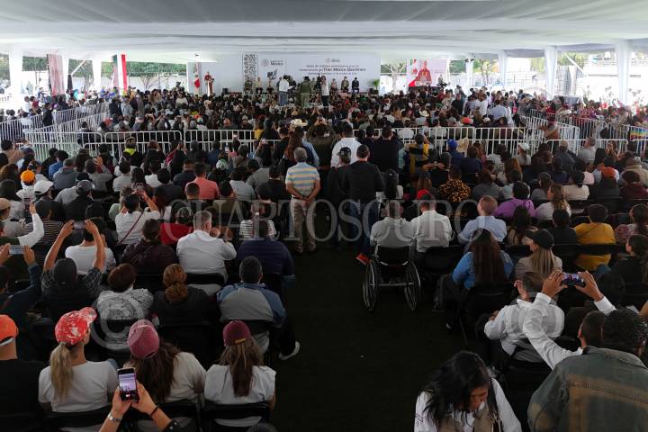 QUERÉTARO, QUERÉTARO, 13OCTUBRE2024.- Claudia Sheinbaum, presidenta de México, llega al evento donde dará el banderazo inicial para los trabajos preliminares del Tren México-Querétaro. FOTO: DANIEL AUGUSTO/ CUARTOSCURO.COM