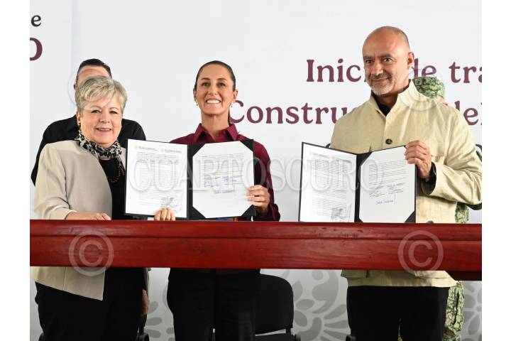 QUERÉTARO, QUERÉTARO, 13OCTUBRE2024.- Con un convenio firmado entre Alicia Bárcena, secretaria de Medio Ambiente y Jesús Esteva Medina, secretario de Infraestructura, Comunicaciones y Transporte, dieron inicio los trabajos preliminares para la construcción del Tren México-Querétaro. FOTO: DANIEL AUGUSTO/ CUARTOSCURO.COM