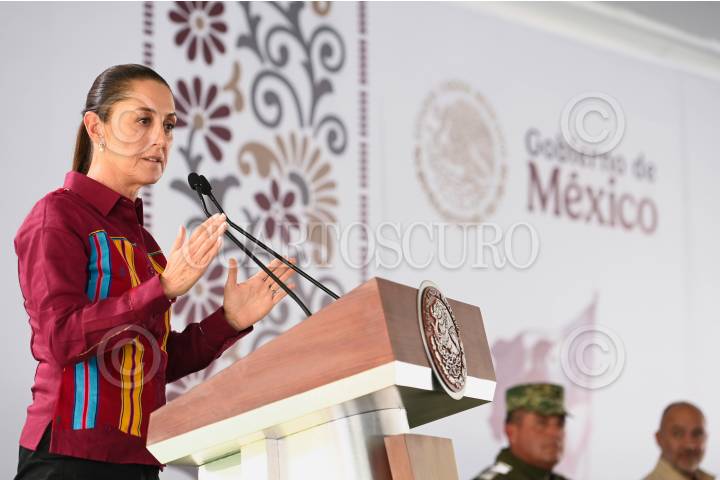 QUERÉTARO, QUERÉTARO, 13OCTUBRE2024.- Claudia Sheinbaum, presidenta de México, ofrece un discurso durante el evento de esta tarde donde dio el banderazo inicial para los trabajos preliminares del Tren México-Querétaro. FOTO: DANIEL AUGUSTO/ CUARTOSCURO.COM