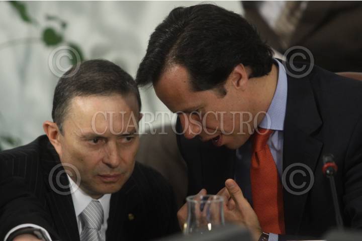 MÉXICO, D.F., 22MARZO2011.- El priista Fernando Castro Trenti y el panista Alejandro Gónzalez Alcocer, en la sesión de la Cámara de Senadores. FOTO: MOISÉS PABLO/CUARTOSCURO.COM