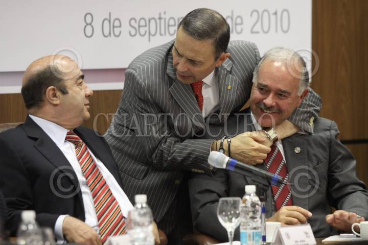 MÉXICO, D.F. 08SEPTIEMBRE2010.- Los senadores Jesús Murillo Karam (PRI), Fernando Castro Trenti (PRI) y Alejandro González Alcocer (PAN), durante la reunión de Comisiones Unidas de Gobernación, Reforma del Estado, Derechos Humanos, Defensa Nacional, Marina, Justicia y Seguridad Pública, como parte del análisis del 4to. Informe de Gobierno del Presidente de la República, en el Senado de la República. FOTO: MOISÉS PABLO/CUARTOSCURO.COM