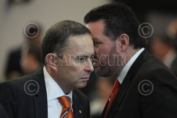 MÉXICO, D.F., 22MARZO2011.- El tricolor Fernando Castro Trenti y el panista Juan Bueno Torio, en la sesión de la Cámara de Senadores. FOTO: MOISÉS PABLO/CUARTOSCURO.COM