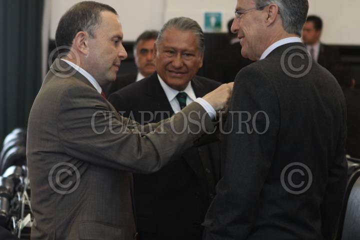 MÉXICO, D.F., 20OCTUBRE2011.- Los senadores Manlio Fabio Beltrones, coordinador del PRI, Fernando Castro Trenti, PRI y José González Morfín, presidente de la mesa directiva del Senado, durante la sesión en la que se ratificó la medalla Belisario Domínguez a el Ingeniero Cuauhtémoc Cárdenas. FOTO: MOISÉS PABLO/CUARTOSCURO.COM