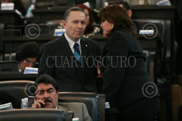 MÉXICO, D.F., 01MARZO2011.- El priista Fernando Castro Trenti y la perredista Norma Esparza Herrera, durante la sesión en la Cámara de Senadores. FOTO: MOISÉS PABLO/CUARTOSCURO.COM
