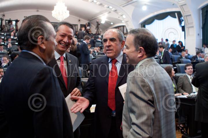 MÉXICO, D.F., 12ABRIL2011.- Los senadores Manlio Fabio Beltrones, Rogelio Rueda, Pablo Gómez y Fernando Castro Trenti, en la última sesión que se realizará en la vieja casona de Xicotencatl. FOTO: MOISÉS PABLO/CUARTOSCURO.COM