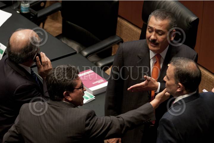 MÉXICO, D.F., 15FEBRERO2011.- Los senadores priista en votación en la Cámara de Senadores; Heladio Ramírez, Manlio Fabio Beltrones, Fernado Castro Trenti y Carlos Aceves del Olmo FOTO: CUARTOSCURO.COM