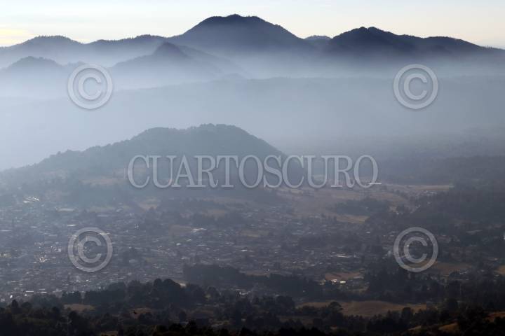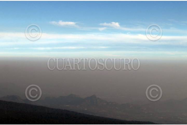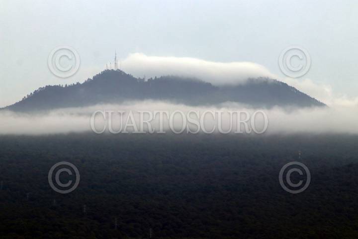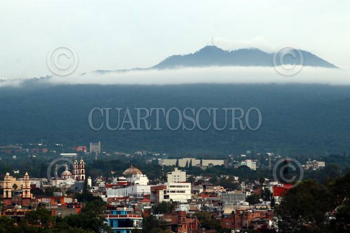 Un banco de niebla divide el paisaje, arriba el volcán de Tres Marías, abajo Cuernavaca ciudad de la Eterna Primavera.