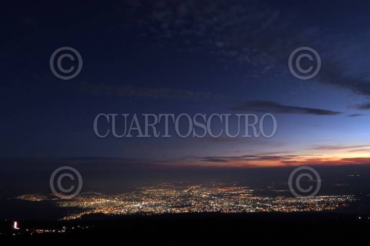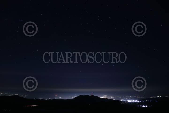 Foto nocturna de la frontera de la Ciudad de México y Morelos, al centro las elevaciones conocidas como Tres Marías.