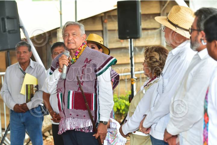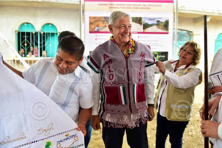Andrés Manuel López Obrador, presidente de México encabezó la Supervisión de la Construcción del camino de mano de obra de Tres Marías - San Miguel del Progreso.