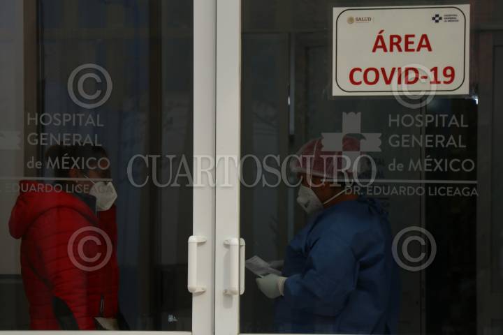 Aspectos del áerea Triage Covid-19 del Hospital General de México en donde los familiares esperan afuera información de sus pacientes.