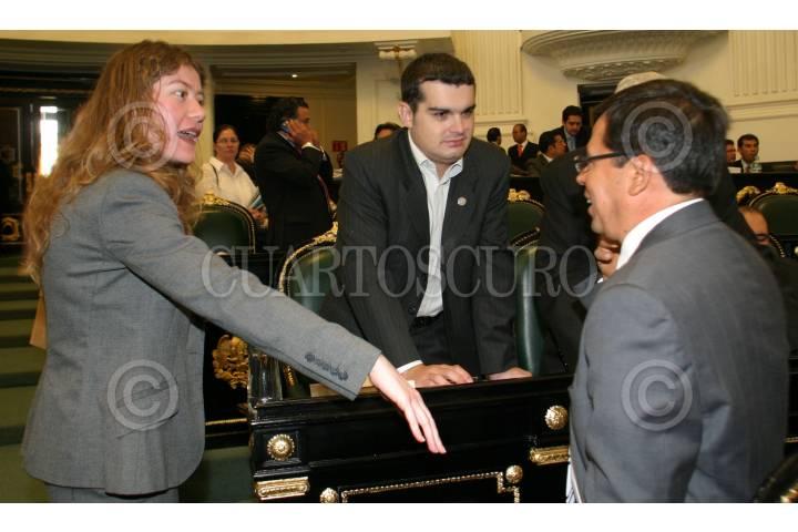 MÉXICO, D.F., 17ABRIL2007-Los asambleístas Paula Soto, PAN, Jorge Triana, PAN y Victor Hugo Cirigo, coordinador de los asambleistas del PRD, durante la sesión en la Asamblea del DF. FOTO: MOISÉS PABLO/CUARTOSCURO.COM