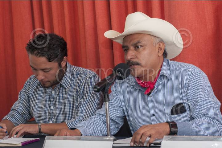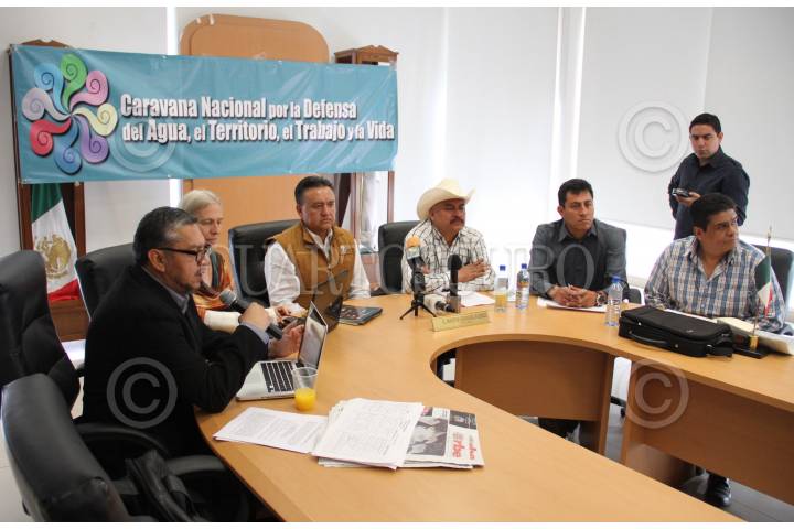 MÉXICO, D.F., 28ABRIL2015.-Tomás Rojo, representante de la Tribu Yaqui y Martín Esparza, dirigente nacional del Sindicato Mexicano de Electricistas, en compañía de organizaciones sociales y defensoras por el derecho al agua, realizaron una conferencia para presentar la convocatoria para La Caravana Nacional por la Defensa del Agua, el Territorio, el Trabajo y la Vida, que se llevará acabo del 11 al 22 de mayo de 2015. FOTO: ADOLFO VLADIMIR /CUARTOSCURO.COM