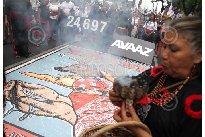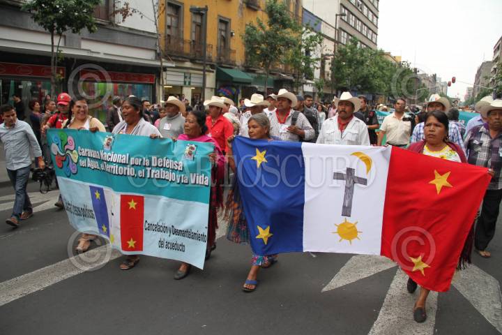 MÉXICO, D.F., 22MAYO2015.- Con un mitin frente a la Suprema Corte de Justicia de la Nación, organizaciones sociales y políticas dan la bienvenida los representantes del pueblo Yaqui, en su último día de Caravana Nacional por la Defensa del Agua, el Territorio, el Trabajo y la Vida. FOTO: ADOLFO VLADIMIR /CUARTOSCURO.COM