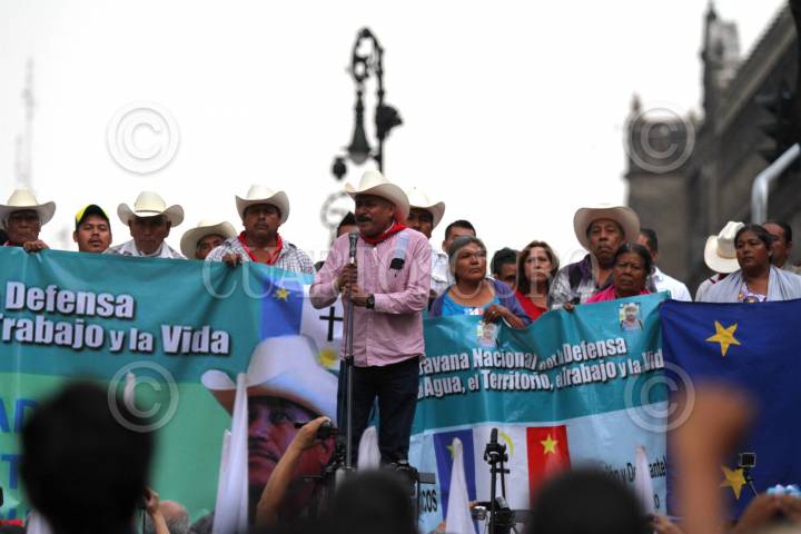 MÉXICO, D.F., 22MAYO2015.- Con un mitin frente a la Suprema Corte de Justicia de la Nación, organizaciones sociales y políticas dan la bienvenida los representantes del pueblo Yaqui, en su último día de Caravana Nacional por la Defensa del Agua, el Territorio, el Trabajo y la Vida. En la imagen Tomás Rojo. FOTO: ADOLFO VLADIMIR /CUARTOSCURO.COM