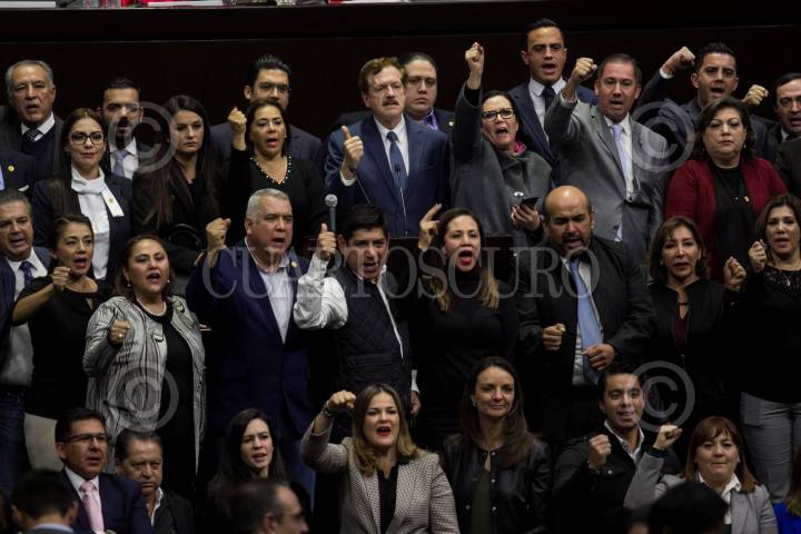 CIUDAD DE MÉXICO, 23DICIEMBRE2018.- Diputados panistas, encabezados por Juan Carlos Romero Hicks, realizaron un pronunciamiento arriba de la tribuna de la Cámara de Diputados. De igual modo, tomaron por un momento la tribuna, sin embargo en breve descendieron. FOTO: GALO CAÑAS /CUARTOSCURO.COM