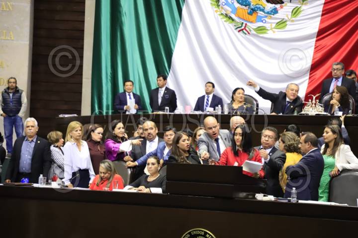 Dante Delgado, dirigente nacional de Movimiento Ciudadano, y legisladores del mismo grupo parlamentario, toman la tribuna previo a la instalación de Comisión Permanente del Congreso de la Unión