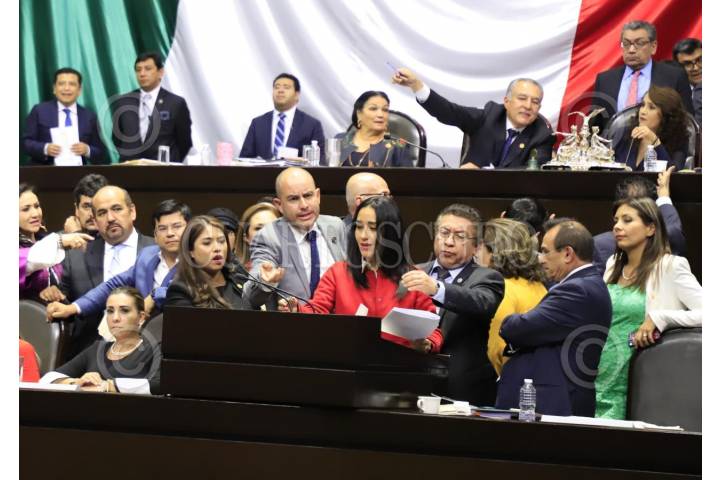 CIUDAD DE MÉXICO, 19FEBRERO2019.- Diputados panistas le arrebataron el micrófono a la secretaría Karla Almazán y tomaron la tribuna, durante la sesión el la Cámara de Diputados. FOTO: CUARTOSCURO.COM