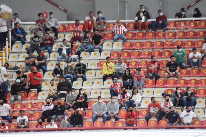 Aspectos de las tribunas al interior del estadio Victoria durante el partido de Necaxa contra Xolos, el primero con afición presencial desde el inicio del torneo.