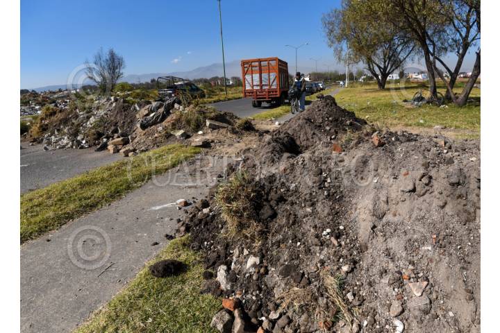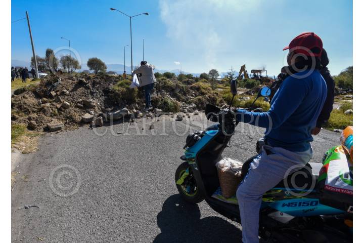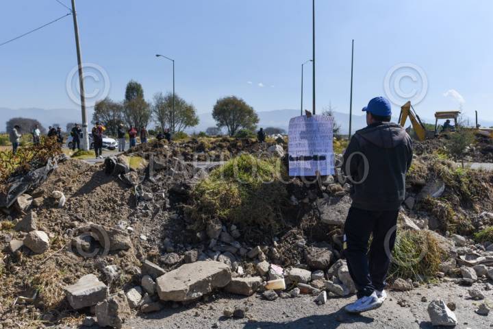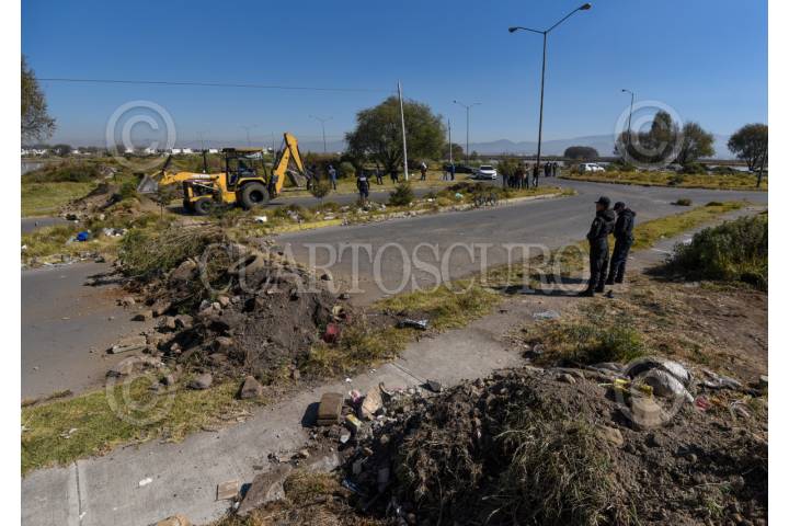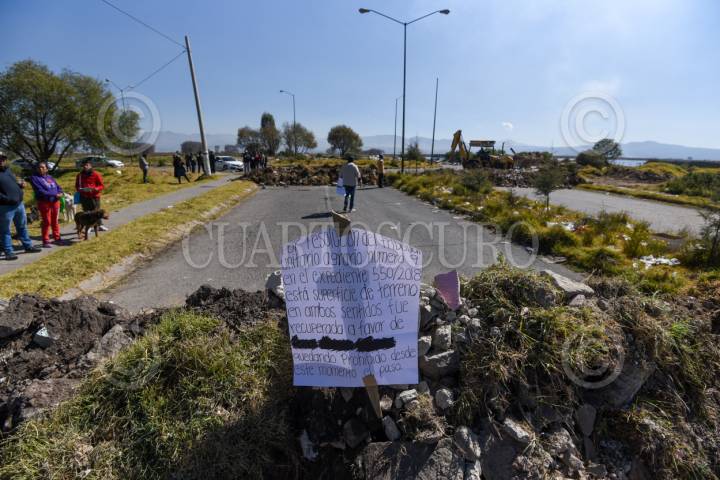 CALIMAYA, ESTADO DE MÉXICO, 16ENERO2024.- El camino que conecta los fraccionamientos de El Nevado y San Dimas en los municipios de Calimaya y San Antonio la Isla fue cerrado al ser ejecutada una orden emitida por el Tribunal Agrario de restituir una parcela ocupada de manera ilegal por la inmobiliaria Proyectos Inmobiliarios de Culiacán S.A. de C.V. (HOMEX), práctica muy recurrida por estas empresas que despojan a ejidatarios de sus terrenos e incumplen compromisos; los habitantes de estos fraccionamientos buscaron rutas alternas para poder trasladarse a sus trabajos, centros escolares o realizar sus actividades cotidianas. FOTO: CRISANTA ESPINOSA AGUILAR /CUARTOSCURO.COM