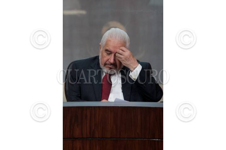 MÉXICO, D.F. 11JULIO2012.- José Alejandro Luna Ramos, magistrado presidente del Tribunal Federal Electoral (TRIFE), durante la sesión en donde se otorgó el recurso de amparo promovido por Fernando Larrazabal Bretón, exalcalde panista de Monterrey y ahora diputado federal electo, en contra del requerimiento del Cabildo regiomontano que le solicita regresar a su cargo como alcalde de esa entidad. Esta resolución, aprobada por la mayoría de los integrantes del TRIFE, deja sin efectos el acuerdo emitido este lunes por el Cabildo, donde a su vez se dejaba sin efectos la licencia otorgada a Larazabal Bretón para participar en los comicios del pasado 01 de julio, por lo que ya no se puede obligar al diputado federal electo, a retomar su cargo como munícipe regiomontano, de hacerlo, se convertiría en un candidato inelegible por lo que se estaría violando los derechos político electorales de Fernando Larrazabal, que le permite separarse de su cargo público y ser votado para otro. FOTO: JUAN PABLO ZAMORA /CUARTOSCURO.COM